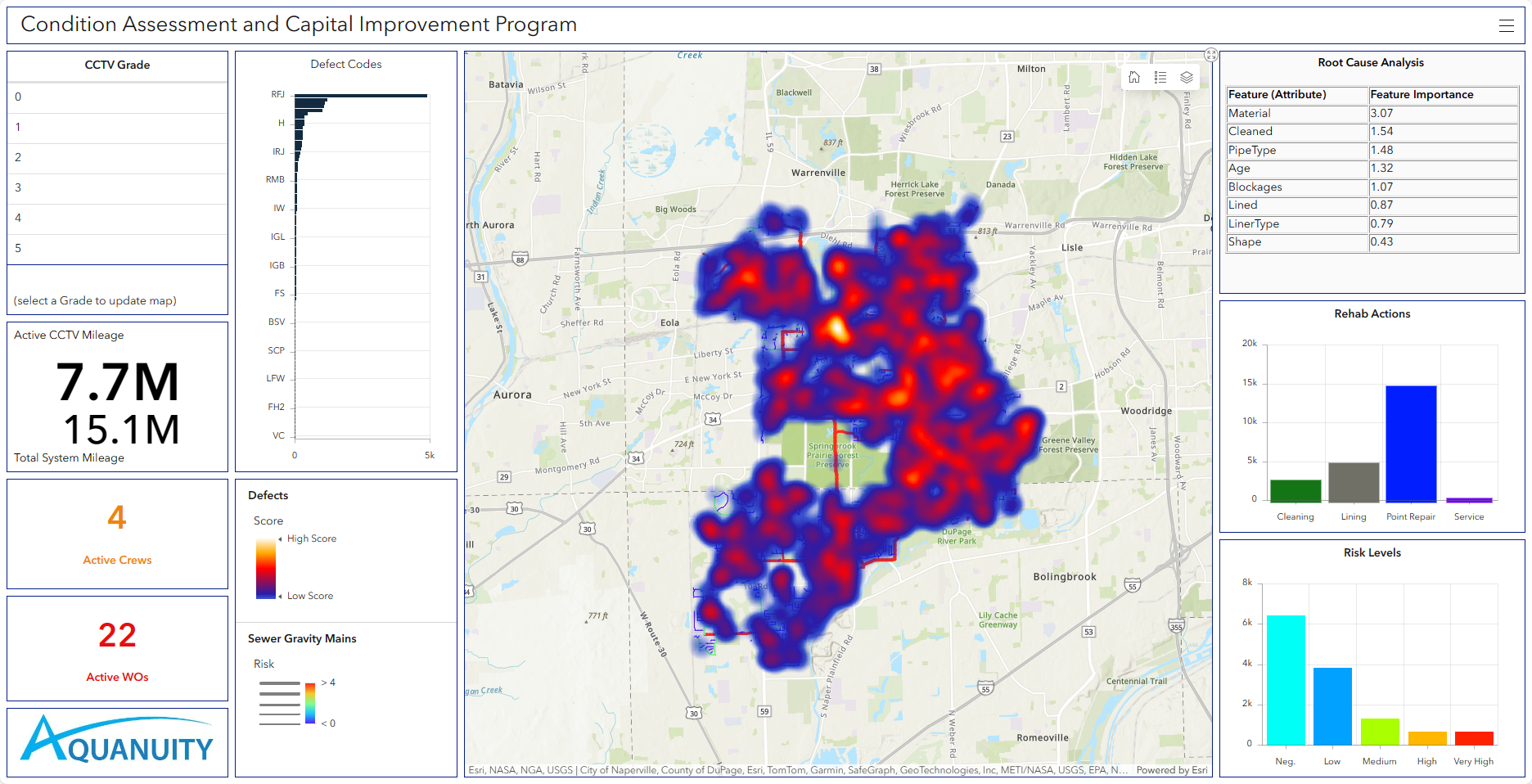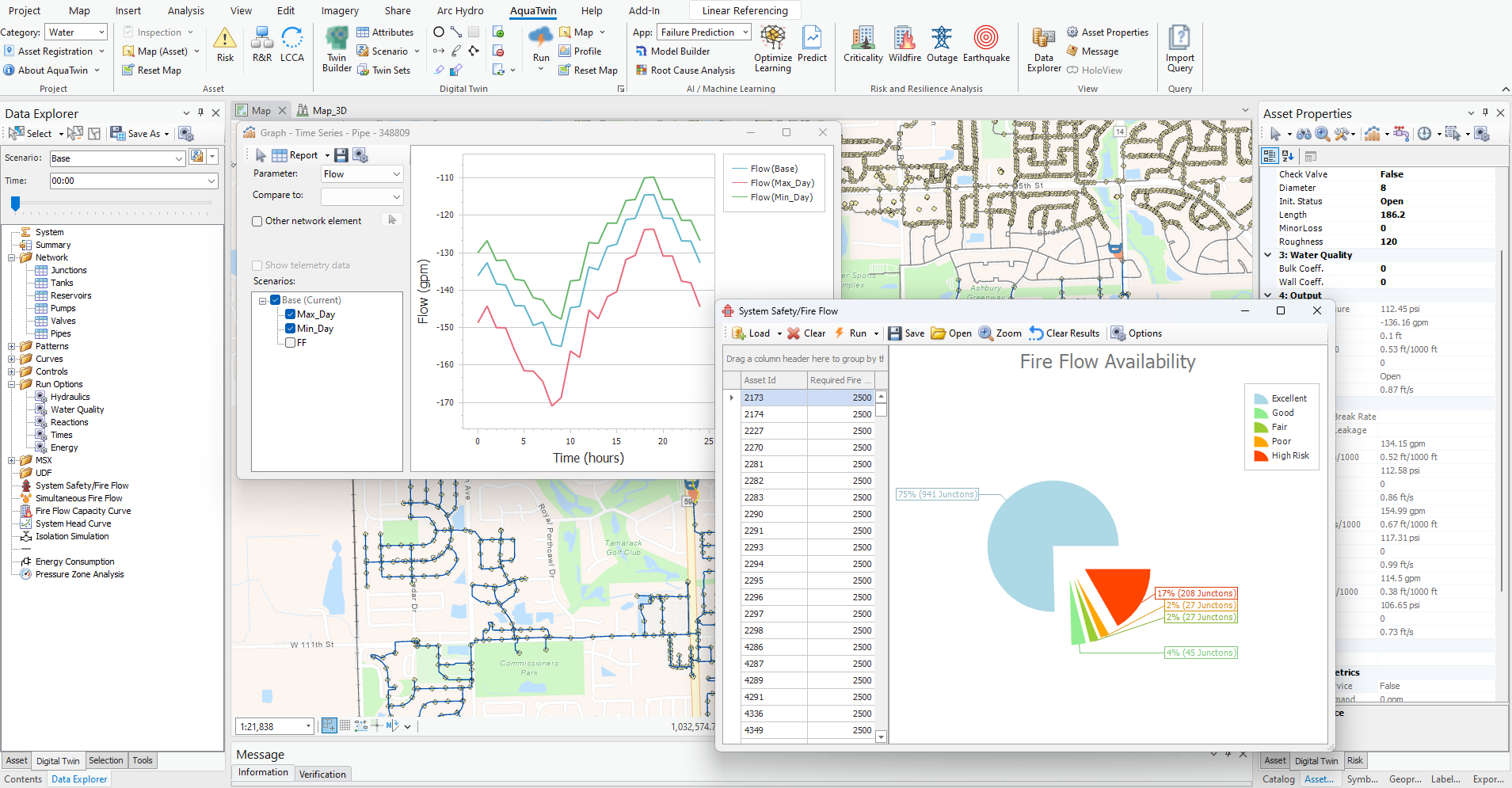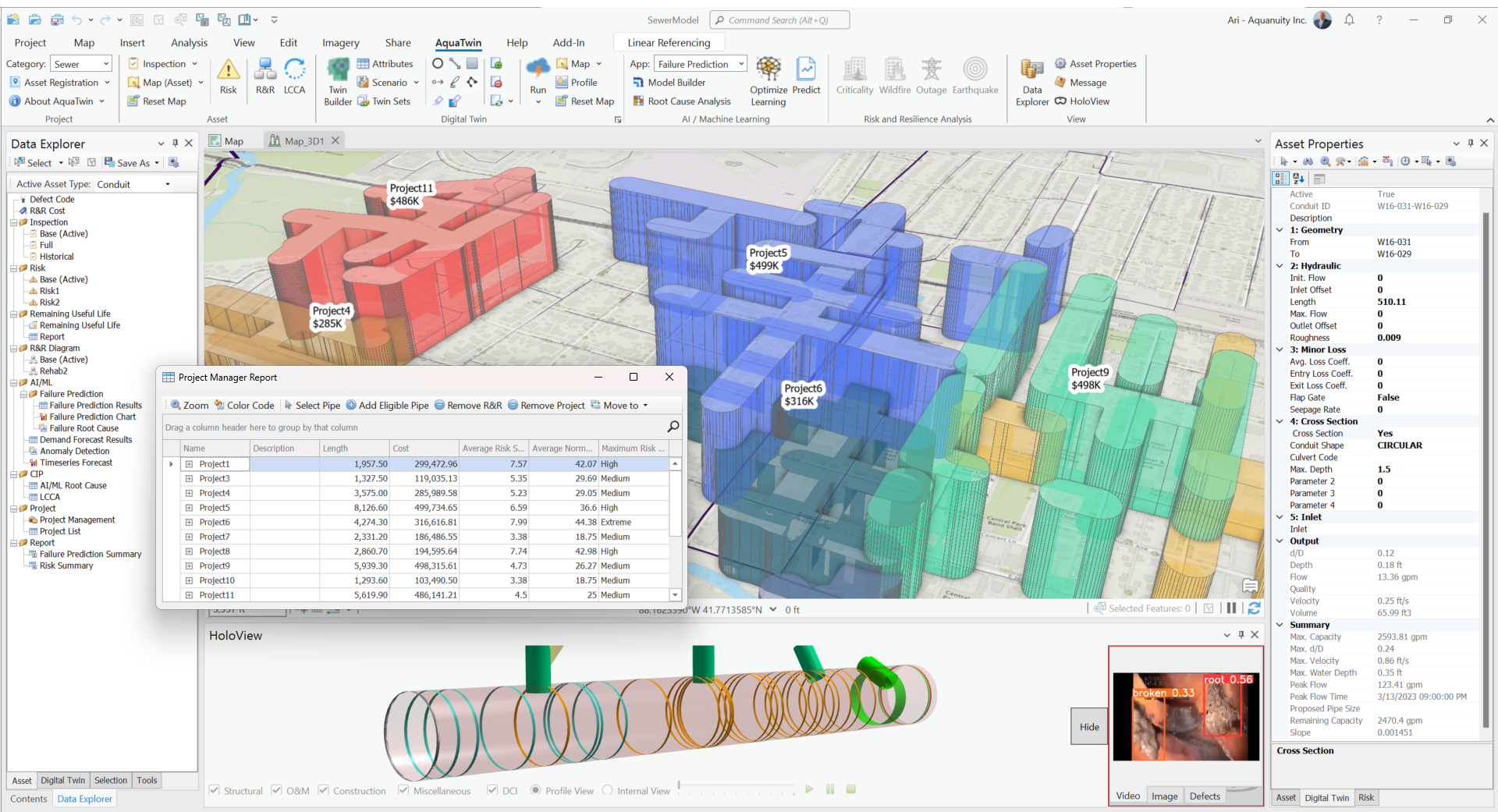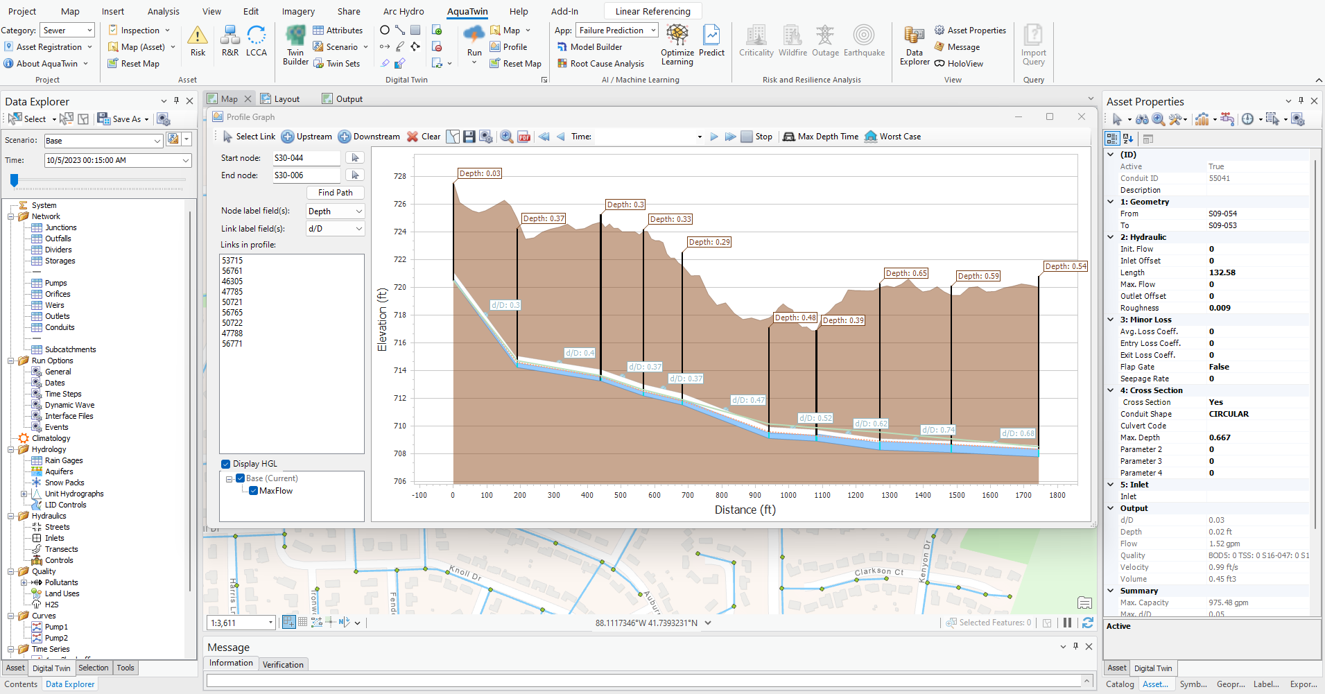 Use built-in analytics to determine and score the likelihood of failure, consequence of failure including hydraulic performance impact, and business risk exposure of each asset and better manage and prioritize repair.