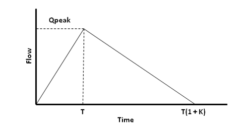 Each unit hydrograph, as shown in the figure to the right, is defined by three parameters: