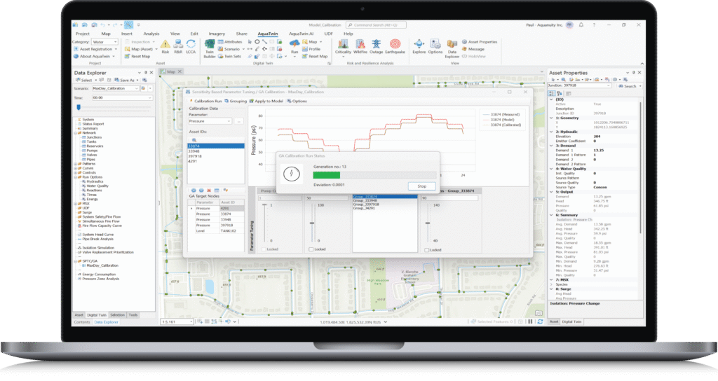 A comprehensive 64-bit feature-packed modeling and analysis software extension for ArcGIS Pro®, AquaTwin Water lets utilities predict how their water systems will perform during disruptive incidents and determine how to best absorb, recover from, and more successfully adapt to such incidents and increase resilience. Its powerful simulation and analysis tools can help water utilities to explore the capacity of their systems to handle disruptive incidents and guide the planning necessary to make them more resilient over time. Users are now able to proactively solve or prevent problems, make confident decisions, execute quickly on a consistent basis, and plan and shape a better future for their communities.
