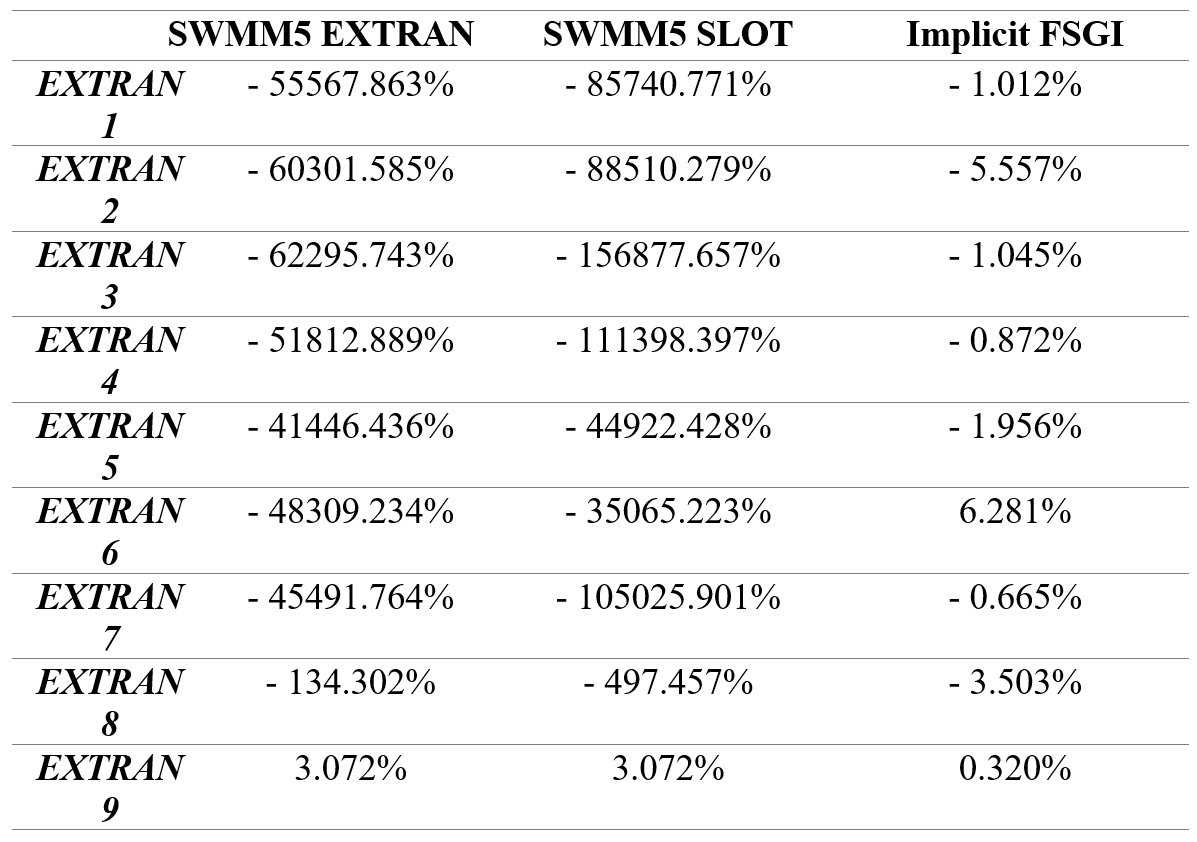 Table 6: EXTRAN test networks mass balance error comparison