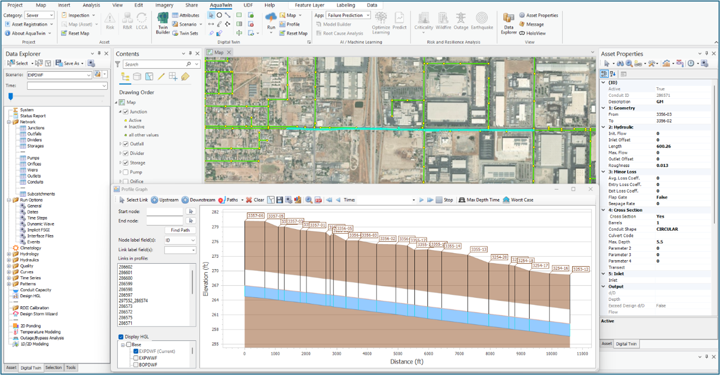 Akel Engineering uses the full range of AquaTwin products to evaluate the capacity and condition of the existing wet infrastructure. Their team works to prep, validate, and check the data and the intense analytics take place in the background. Akel Engineering ensures that the data is connected accurately and uses AquaTwin tools to develop solutions. Their final model distinguishes between expansion improvements and replacement improvements and includes a prioritized plan. AquaTwin tools, which provide thorough documentation of the data-driven effort and recommendations, are often transferred to client agencies for future updates.