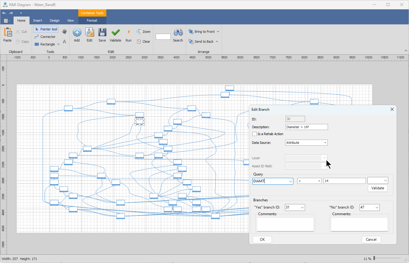Building the Risk Prioritization Model – Converting DC Water’s existing Risk Prioritization model to AquaTwin Asset involved implementing each parameter from the previous risk model within the new project. AquaTwin Asset’s intuitive user interface simplified the process, and its flexible options allow evaluation of risk factors individually or as a batch. The powerful and quick analysis enabled efficient quality control and corrections to the model.