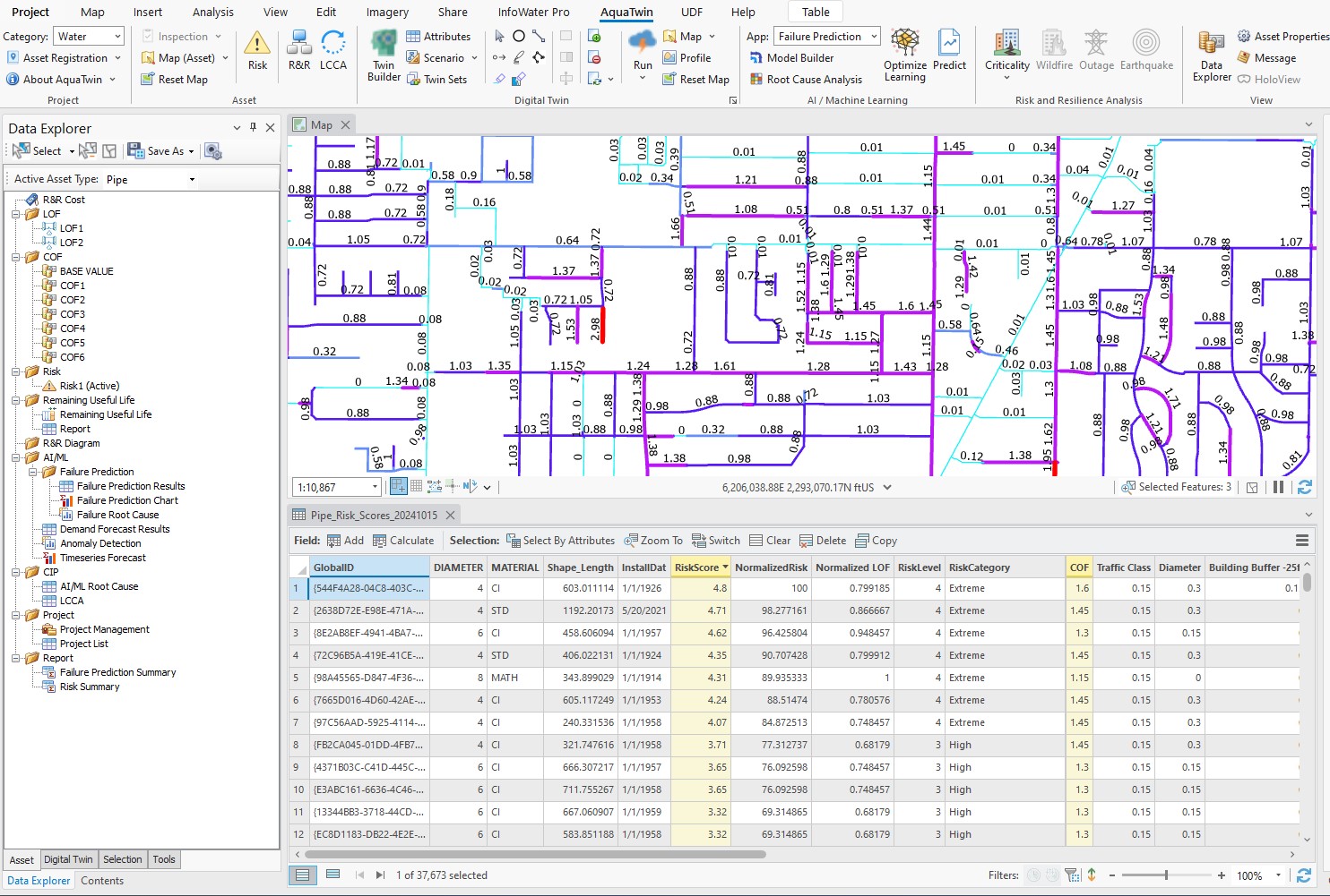 AquaTwin Asset is also fully integrated with ArcGIS Pro, making it easier to add new factors for analysis. As they set up the AquaTwin model, the team found that it is already much easier to update and visualize than their previous spreadsheet-based model. Blake Yamamoto, a Principal Engineer at the City of Riverside said, “AquaTwin Asset has strong integration with ArcGIS Pro and the reporting tools are fantastic, especially from the perspective of being able to provide documentation and justification of how segments of pipe for a particular project were selected.”