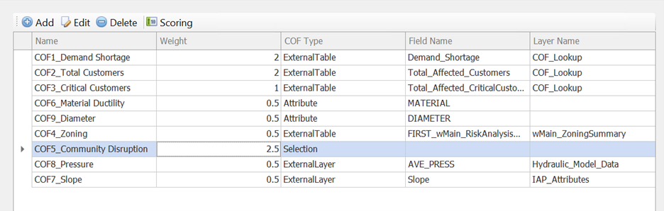 AquaTwin Asset then allowed for flexibility when combining LOF and COF into a risk priority score. The software allowed for either an additive or multiplicative approach and gave the user flexibility to utilize either of the results.